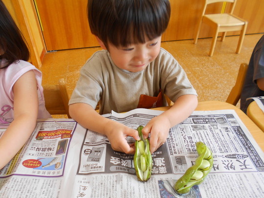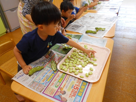 5月21日にぱんだ組食育としてそら豆の皮むきを行いました。