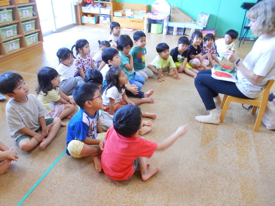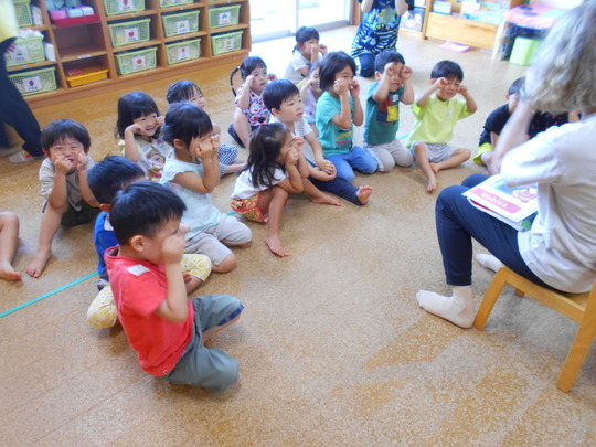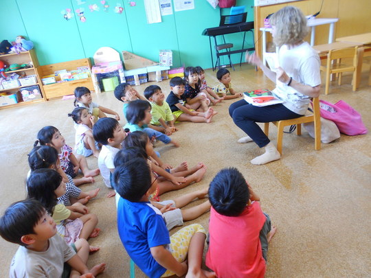「英語で遊ぼう」は3.4.5歳児(幼児組)が30分間行っています。