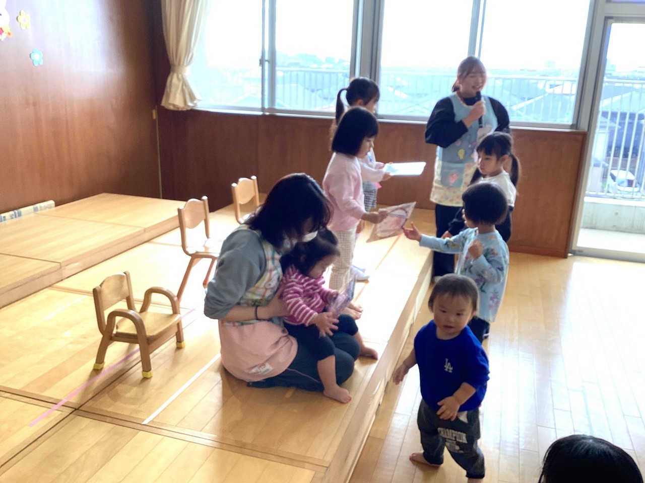 4月22日(火)に誕生会が行われました。新年度初めてのお誕生会。4月は13名のお友だちがお誕生日を迎えました。クラスのお友だちからお誕生日カードを受け取ってとてもうれしそうでした!先生の出し物の際は幼児組のお誕生児の子どもたちが参加し、「さんぽ」を踊って見せてくれました。