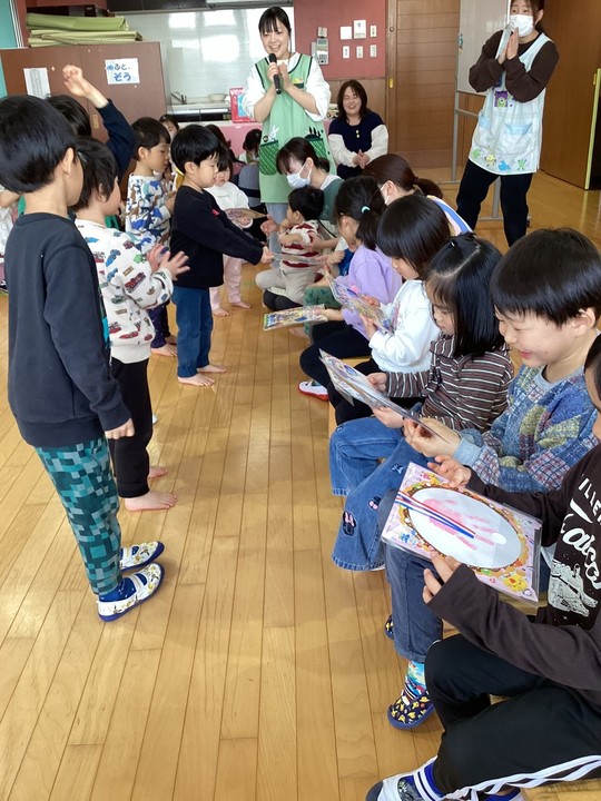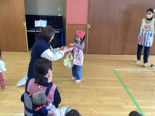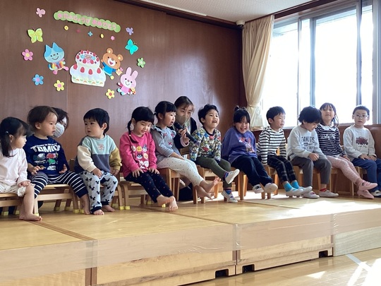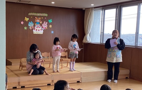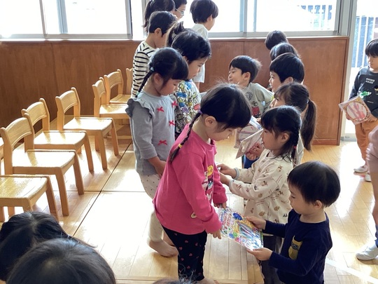 12月生まれのお友だち4名の誕生会が行われました。クラスのお友だちから歌のプレゼント。元気いっぱいの歌声が響き渡り、楽しい誕生会になりました。今回は体調を崩してお休みだったお友だちもいました。元気に登園した時に「おめでとう」を伝えたいと思います。