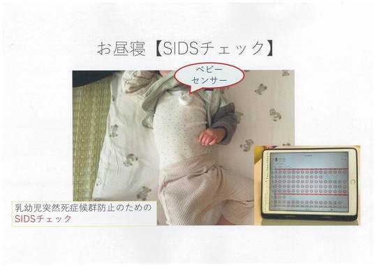 乳幼児突然死症候群防止のため、0歳児クラス(ひよこ)でベビーセンサーを導入しています。