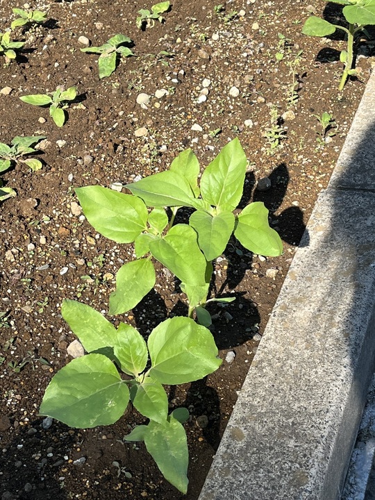 種の種類は3種類。大きいひまわり・小さいひまわりが2種類です。どのひまわりも元気いっぱいで、どんどん空に向かって生長しています。