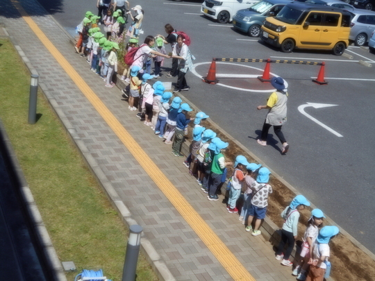 3つのお約束をまもり、ぞう組のお友だちは横断歩道の渡り方も学びました。しっかり大きく手を挙げて上手に練習出来ました。