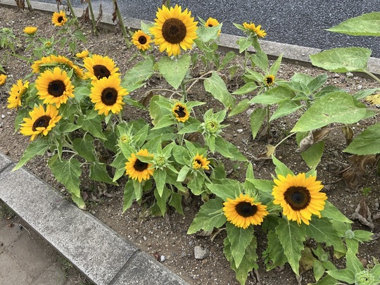 5月に植えたひまわりの種。気温がぐんぐん高くなり、ひまわりも大きく生長してついに花が咲きました。今では花壇がとっても明るくなりました。