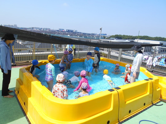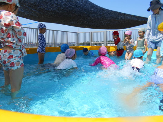 7月22日(月)プール開きです!ぞう組さんからスタートしました。入水時間は15分程でしたが、水に慣れている子が多く、バタ足や顔を水につけても平気な子も。楽しい夏の思い出になると「いいな」と思います。
