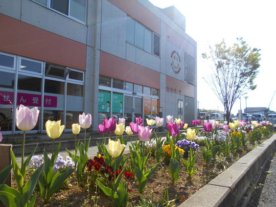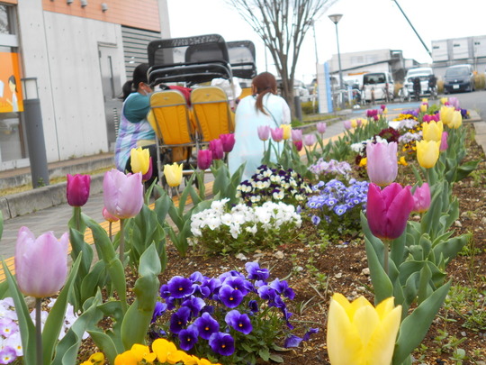 昨年度のぞうぐみ・きりん組が植えたチューリップが咲きました。とてもきれいで、病院に来院された方も喜んでいただいています。