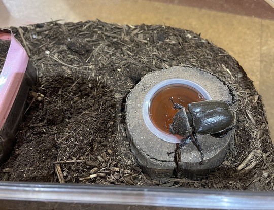 そして昨年飼っていたカブトムシが産卵し、たまごから幼虫、さなぎになり、カブトムシのメスが生まれました。とても元気でぞう組にオス2匹と過ごしています。他のクラスにもカブトムシが元気に過ごしていますよ。