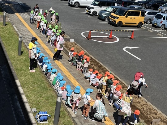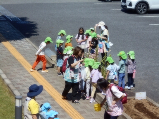 5月10日ぱんだ組・きりん組・ぞう組で保育園の花壇にひまわりの種を植えました。