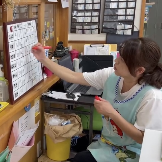 人数を数えたら、事務所に報告します。事務所内にある人数ボードと、報告された人数があっているか事務所職員全員で確認をします。